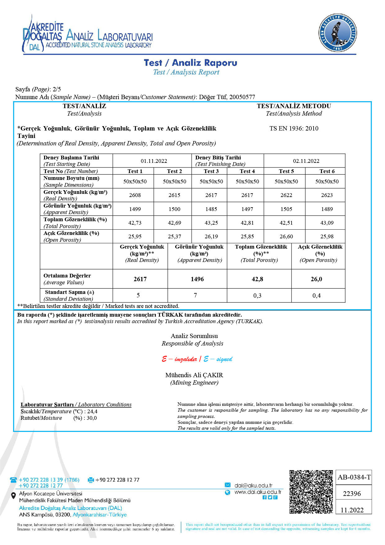 DÖĞER TAŞI ISI YALITIM ANALİZİ
